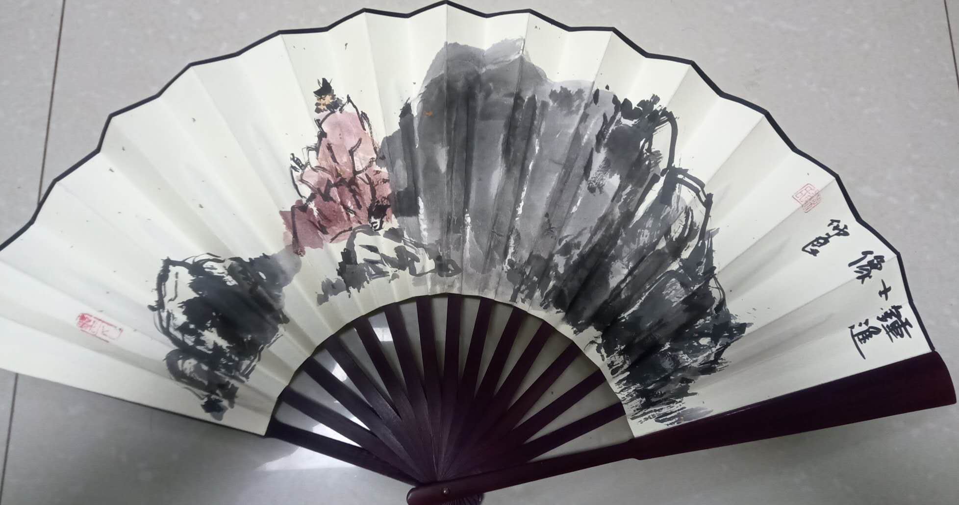 野石 手绘钟馗扇子